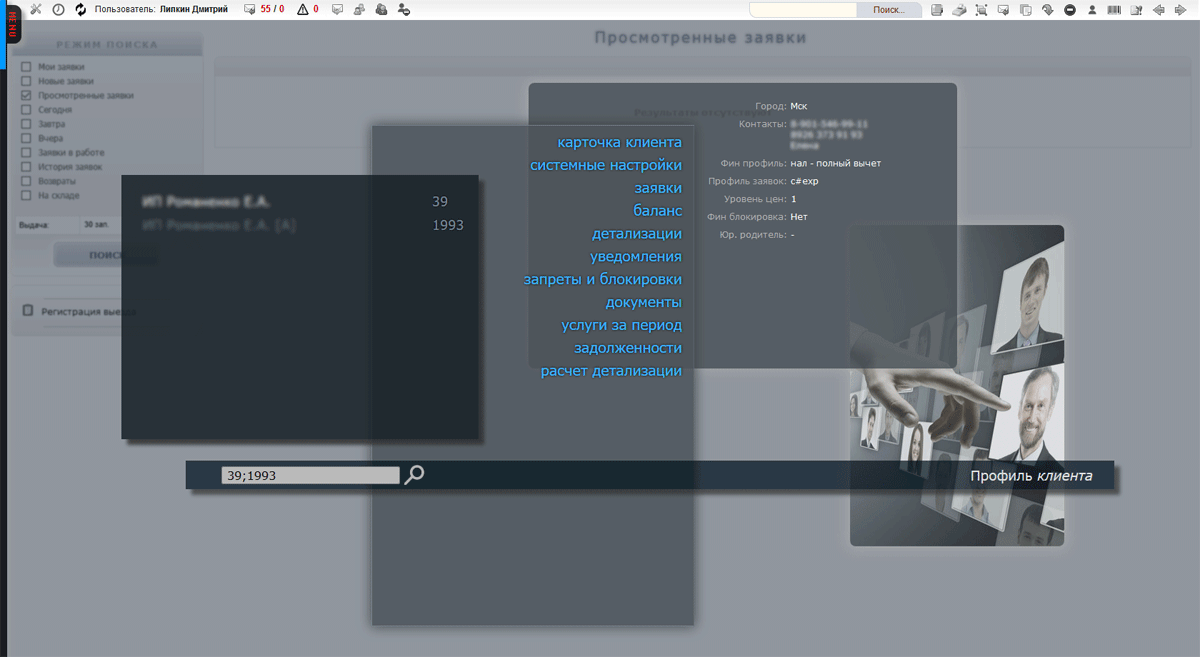 Интегрированное предствление информации аккаунта клиента для менеджеров