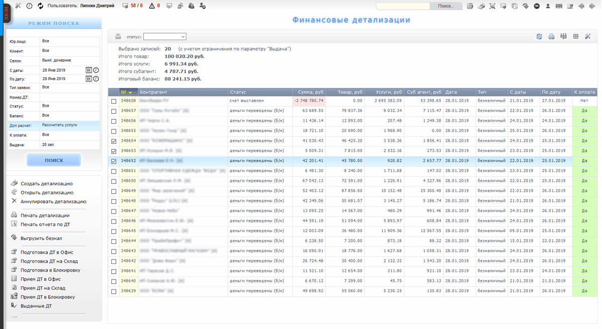 Просмотр финансовой детализации