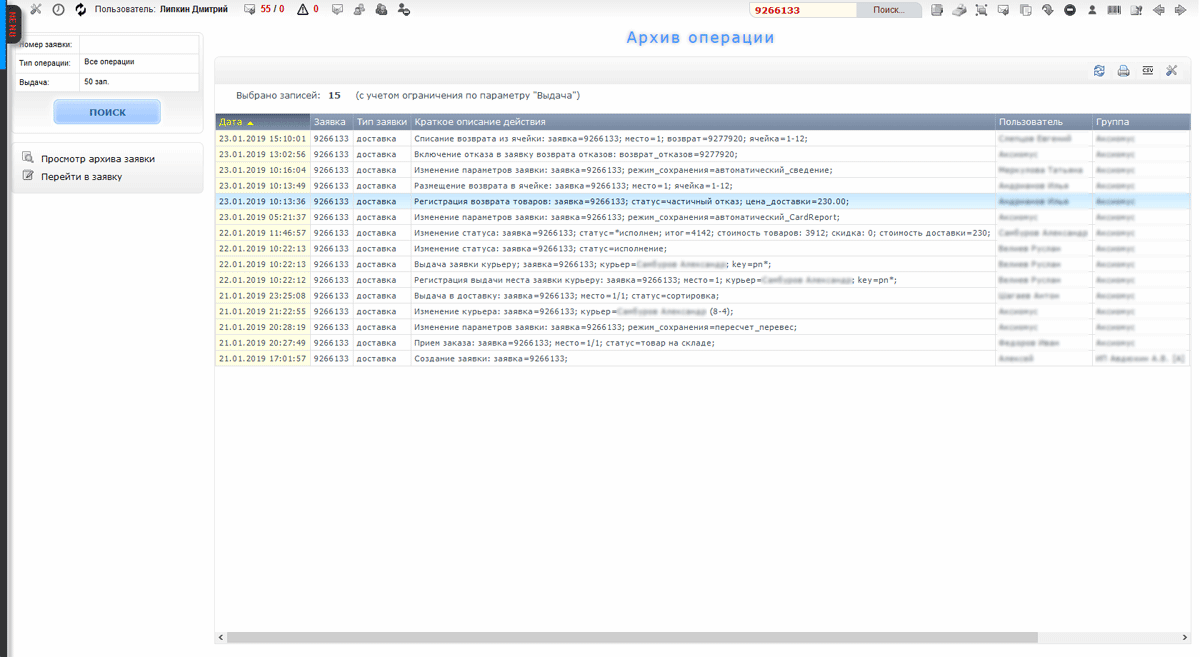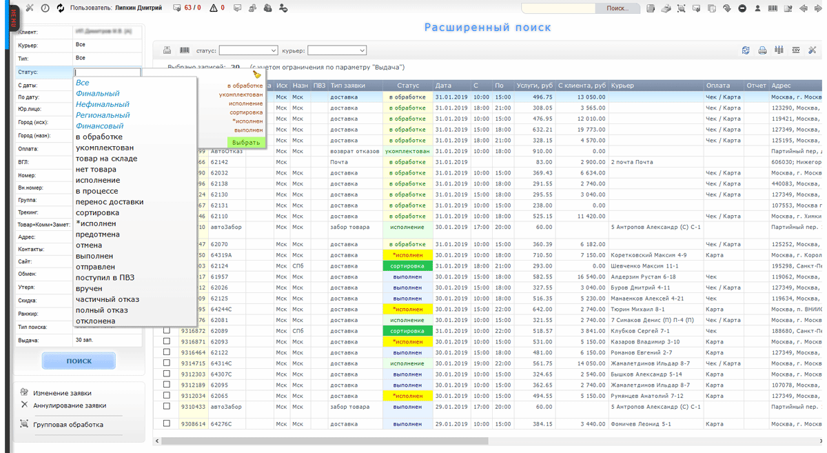 Расширенный поиск заказов