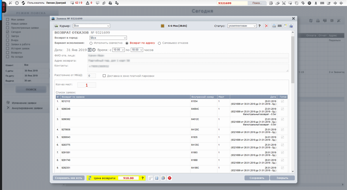 Ежедневное сведение курьеров (отчет курьера)
