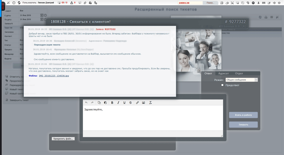 Форма ответа на тикет